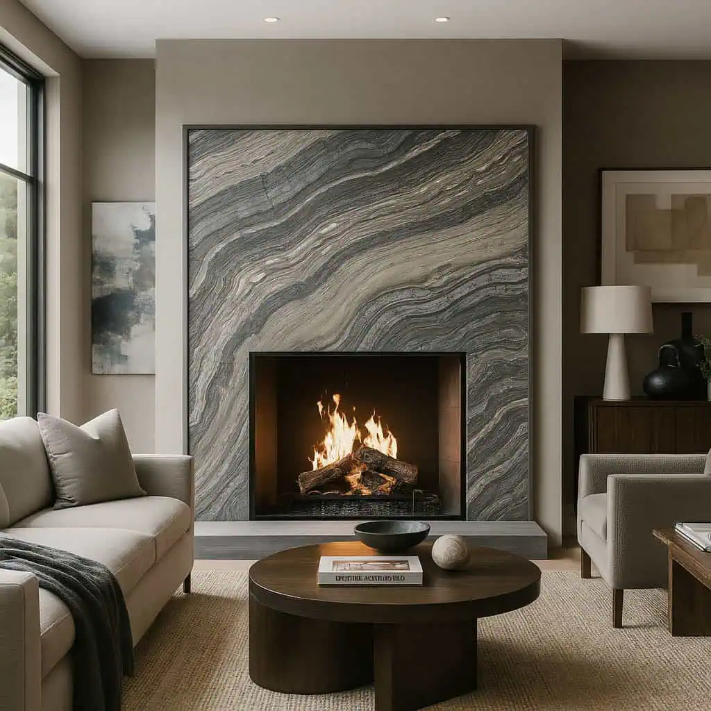 - Wall cladding and fireplace surrounds to introduce layered texture and tone
